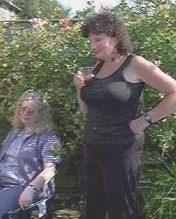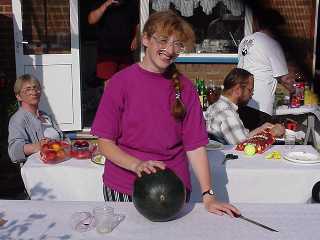 Helen prepares to slice open her enormous melon (oo err missus) |