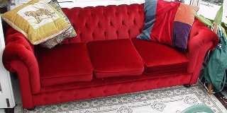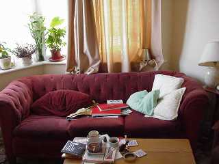 helen's sofa Me sofa is rather arj (it's still only a dozen fortnights) but now has three sheddi claims. 1) It stored a watch for four munfs 2) It put up wiv coj 3) It hid Guy's tarpulin for nearly a munf The central cushion was a gift. A tad naff... This picture was taken by Carl... |