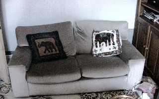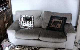 Linz's sofa with broken cat flap. Don't sit on the end with the sleeping bag or you'll fall through |