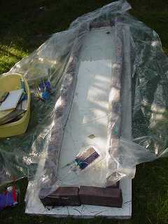 The pond was made from an old door, a ring of bricks and a piece of plastic sheeting It would help to place the pond in bright sunlight but as my garden faces north it only gets bright light from about 10am to 2pm, after that it comes through next door's trees |